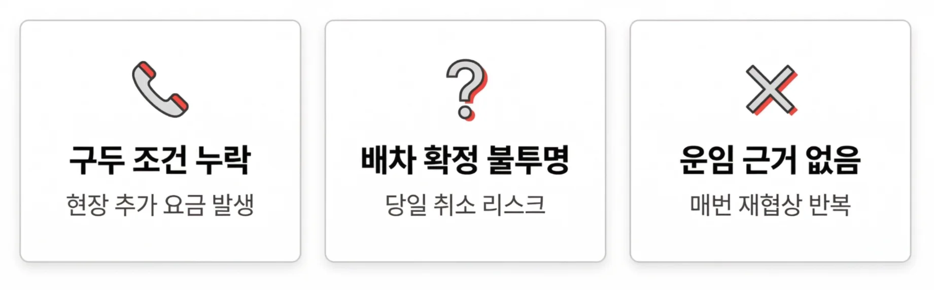 이 세 가지가 반복되는 이유는 하나입니다. 조건과 운임이 기록으로 남지 않기 때문입니다.