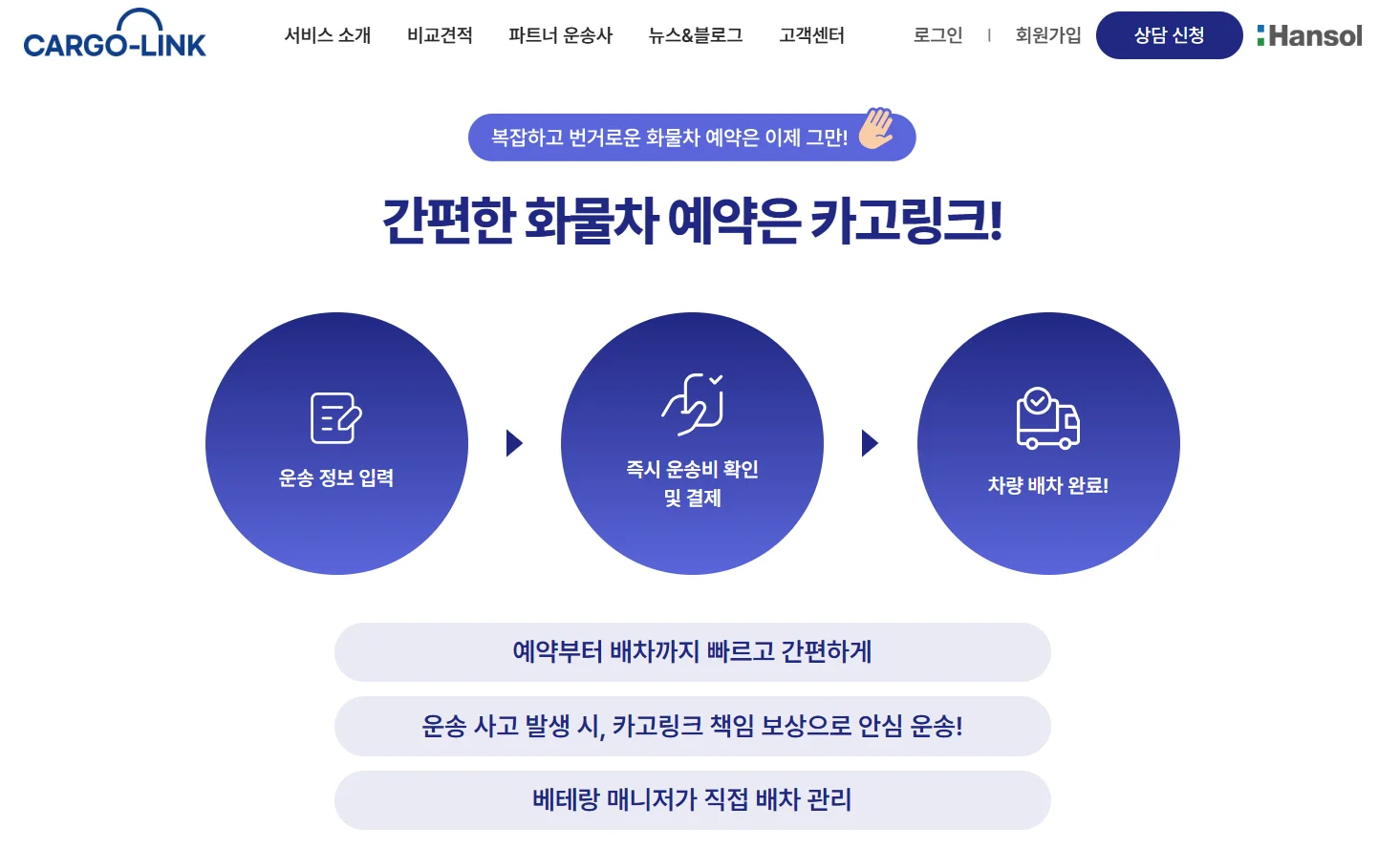 챙길 것 많은 화물운송, 이제 카고링크와 쉽고 합리적으로 배차 하세요.
