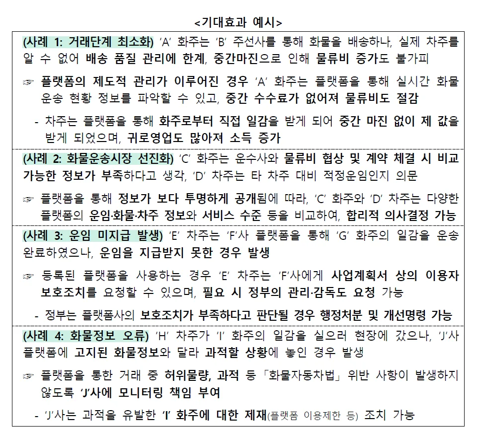 플랫폼의 책임 강화: 양사 간 데이터 연동과 전담 매니저 체계를 통해 화물·배차 정보의 정확성과 이용자 보호 수준을 높입니다.