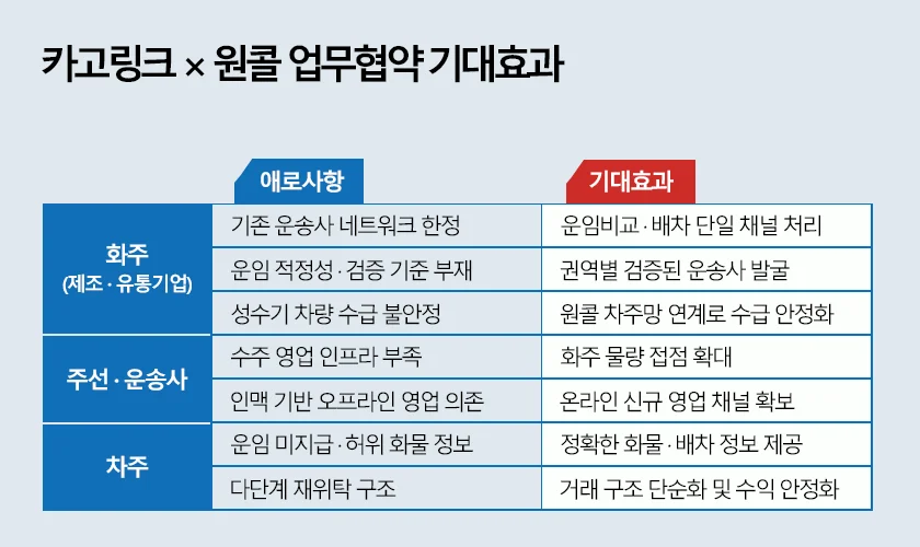 카고링크와 원콜은 각자의 강점을 유지한 채 필요한 영역만 유기적으로 연결함으로써, 정책과 시장이 동시에 요구하는 미들마일 물류 구조를 현실적으로 구현해 나갈 계획입니다.