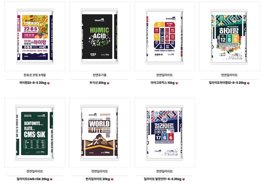 네. 다양한 종류의 비료가 출고되고 일라이트나 CMS 같은 제품들이 많이 판매됩니다. 천지바이오 비료,농업자재들은 보은 지역이나 충청 이남 쪽으로 많이 출고되고 있습니다. 대부분 농약사나 농협으로 납품 되는 경우가 많아요!