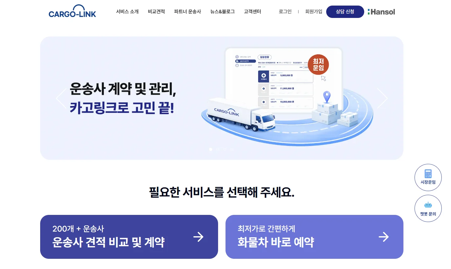 업무가 많이 편해졌어요. 예전에는 배차 여부를 계속 확인해야 했는데 이제는 카고링크를 통해 오더를 올려두면 알아서 배차가 되니까 배차 완료됐는지 확인만 하면 돼요. 전화기 붙잡고 씨름 할 시간에 다른 업무에 집중할 수 있게 되었습니다. 이렇게 편한 서비스가 있는지 몰랐는데 역시 정보의 중요성인가봐요!(하하)