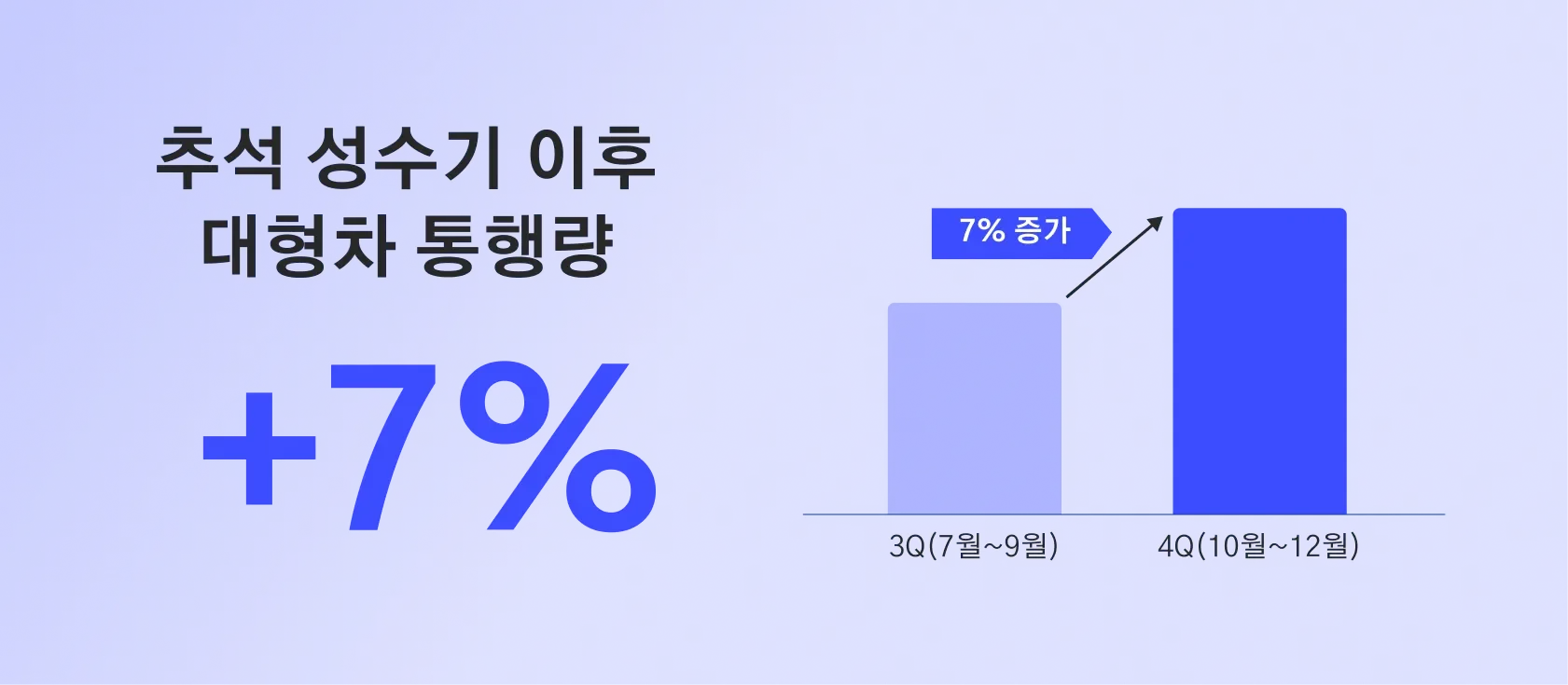 그러나 작년 한국도로공사교통량 통계를 보면, 추석이 포함된 대형차 9월 통행량은 8월 대비 약 2.9% 감소했습니다. 그러면서 추석 직후 10월에는 대형차 교통량이 최대 11% 까지 급증했는데요. 연휴 기간 동안 지연된 출고와 재고 운송이 한꺼번에 이루어지면서 기업 물류가 폭발적으로 반등하는 것이죠.