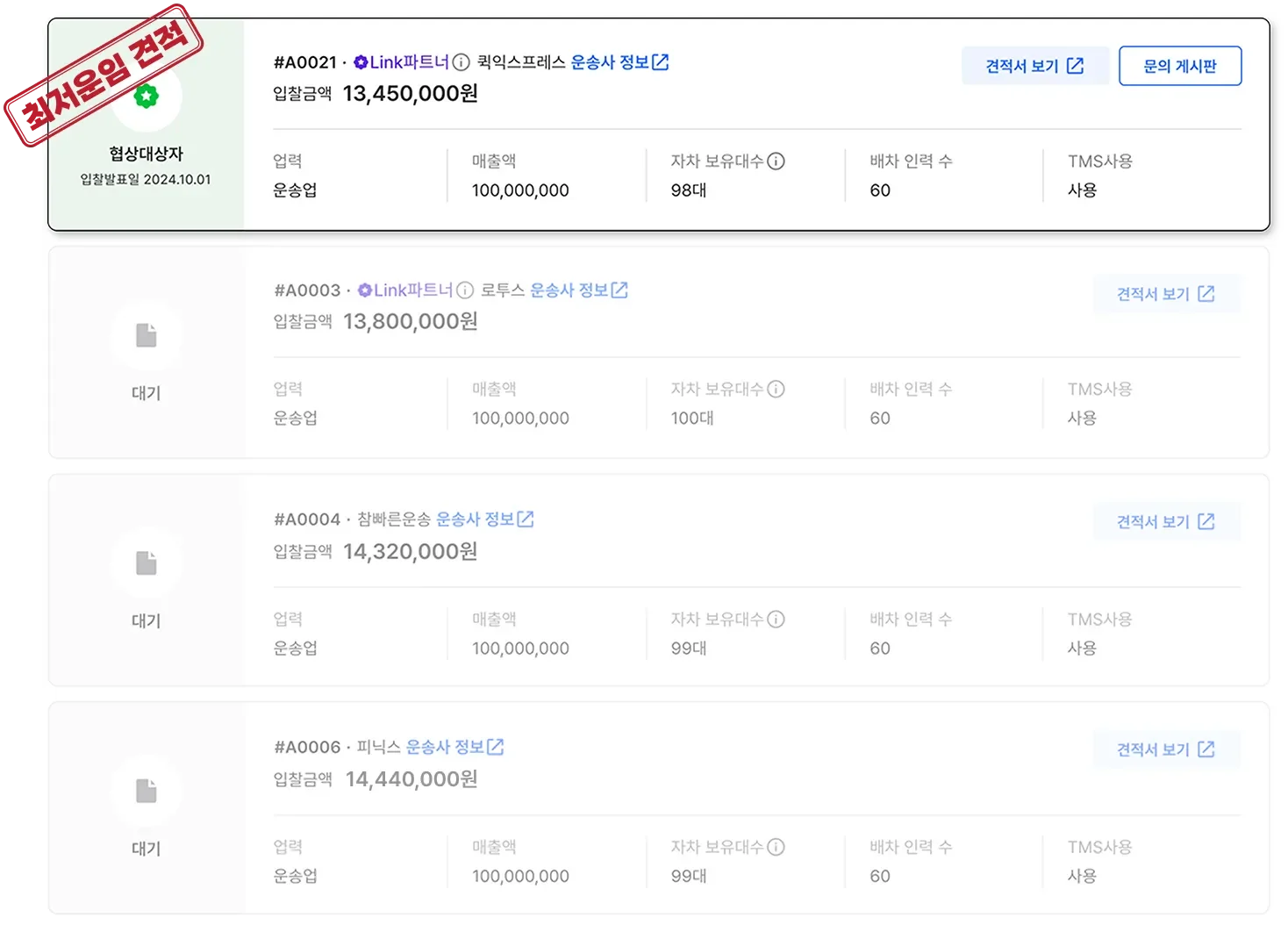 3️⃣ 운송사 정보 확인으로 화물 운송 품질까지 미리 검토하기